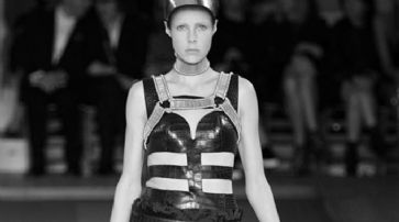 Taffe Ästhetik Zu den Schlüssellooks zählten gegürtete Leder-BHs, scharf geschnittene Schottenröcke und Federroben. Die Farbpalette war simpel mit ihren vorrangig schwarzen, grauen, weissen und roten Tönen, die sich auf dem bunten Laufsteg widerspiegelten. Die taffe Ästhetik erinnerte laut 'WWD' an die Tage des verstorbenen Designers Alexander McQueen. Burton neigt sonst eher zu einem romantischeren Look. Als eines der ersten Outfits präsentierte ein Model ein schwarzes ledernes Oberteil, das um den Oberkörper gegürtet war und mit einem gefaltete Kiltrock in Schwarzrot kombiniert wurde. Sarah Burton wich von ihren sonst so romantischen Looks ab, um eine strengere Ästhetik zu zeigen. /