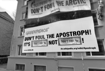 ![]() Dort hatte die bekannte NGO medienwirksam ein riesiges Transparent mit der gegen den Gazprom-Konzern gerichteten Aufforderung «DON'T FOUL THE ARCTIC» gezeigt - allerdings mit einem falsch herum gedrehten Apostroph. Dieser Interpunktionsfehler muss nun den Unmut einer bisher noch nicht in Erscheinung getretenen Organisation geweckt haben. «Die deutsche Sprache wird seit Jahren von falsch verwendeten, meist aus dem Englischen inspirierten Apostrophs überschwemmt», heisst es in einem Flugblatt, das den Passanten an der Konradstrasse verteilt wurde, «doch nicht einmal im Englischen - nein, in keiner Sprache der Welt - wird der Apostroph so gedreht verwendet.» Dabei deutet das Bekennerschreiben durchaus Sympathien für Greenpeace an: «Die Mitglieder unserer Organisation unterstützen Greenpeace jährlich mit Tausenden von Franken.» Und weiter: «Da dürfte doch wohl zu erwarten sein, dass nicht die ganzen Spendengelder nur für teure Kletterausrüstungen und riesenhafte Transparente ausgegeben werden, sondern auch für ein bisschen Korrektorat.» Der Branchenverband der Schweizer Korrektoren, «Lorem ipsum», bestreitet indessen vehement, hinter der Aktion zu stehen, gegen die sich Greenpeace dem Vernehmen nach rechtliche Schritte wegen Hausfriedensbruch und Ideen-Piraterie vorbehält. Diskutieren Sie mit: Ist der korrekte Apostroph ein berechtigtes Anliegen oder bildungsbürgerliche Kleingeisterei?