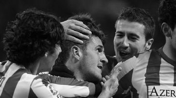 Koke (m.) wird von seinen Mitspielern gefeiert. / Foto: EQ Images