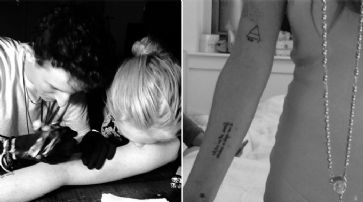 Das Foto zeigt das neue, recht kleine Kunstwerk - ein filigranes, rotes Dreieck mit einer Linie dadurch. Lohan liess es sich oberhalb des Ellbogens auf der Innenseite ihres linken Armes stechen. Unter dem Schnappschuss postete der Star ein weiteres Bild, ein Diagramm eines Dreieckes, das offensichtlich als Vorlage für das neue Tattoo hergehalten hatte. Lindsay Lohan postete ein Schwarzweiss-Foto von sich, wie ihr gerade das Tattoo gestochen wird. /