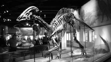 ![]() Hohler Knochenkamm Parasaurolophus war ein Pflanzenfresser. Das auffälligste Merkmal dieser Dinosaurier ist ein hohler Knochenkamm, der sich nach hinten über ihren Kopf erstreckt. Der junge Parasaurolophus mass etwa 2,5 Meter - rund ein Viertel der Länge eines ausgewachsenen Tieres. Zum Zeitpunkt seines Todes war er wahrscheinlich jünger als ein Jahr, zeigten die Untersuchungen. Dennoch sind auf dem Schädel des Dinos schon Ansätze des Knochenkamms zu erkennen. Das sei überraschend, weil verwandte Arten diesen Kopfschmuck erst entwickelten, wenn sie wenigstens halb ausgewachsen waren, erläutern die Forscher. Experten vermuten, dass die Tiere mit Hilfe des Knochenkamms Töne erzeugen konnten und ihn auch als visuelles Signal einsetzten. Eine computertomographische Untersuchung des Schädels lässt vermuten, dass der Baby-Dino sehr viel höhere Töne erzeugte als ausgewachsene Tiere, die wohl im tiefen Frequenzbereich tönten.