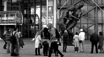 Die Statue von Zidanes «Kopfstoss» wurde von vielen Schaulustigen begutachtet. /