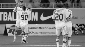 In Überzahl War die Thuner Mannschaft vor zwei Wochen beim 0:3 im Hinspiel gegen denselben Gegner noch chancenlos geblieben, dürfte sich das Team von Urs Fischer über die gestrige Niederlage noch einige Tage ärgern. Das Heimteam vergab in der Startphase zwei hochkarätige Chancen zur Führung und konnte nach dem frühen Platzverweis gegen Dieumerci Mbokani mehr als 70 Minuten in Überzahl agieren. Am Ende setzte sich aber die grössere Qualität und Abgeklärtheit der Mannschaft von Oleg Blochin durch. Vor allem der technisch überragende Andrej Jarmolenko, der einen Marktwert von mehr als 20 Millionen Franken hat, sorgte für den Unterschied. Der FC Thun war zu Beginn der Partie im Vergleich zur Begegnung in Kiew wie verwandelt aufgetreten und bewies den von Trainer Fischer geforderten Mut. Bereits nach 27 Sekunden bot sich Christian Schneuwly nach einer schönen Flanke von Berat Sadik die Chance zum 1:0. Die Direktabnahme Schneuwlys aus zehn Metern parierte Alexander Schowkowski im Kiewer Tor stark. Fünf Minuten später waren die Thuner der Führung noch näher, als Sadik nach einem Steiplass von Thomas Reinmann und einem Dribbling mit seinem Schuss nur den Innenpfosten traf. Harmloses Foul Auch Dynamo trug seinen Teil zur animierten Startphase in der Thuner Arena bei. Miguel Veloso prüfte nach einem Corner Guillaume Faivre aus spitzem Winkel ein erstes Mal (4.), in der 8. Minuten schoss der Portugiese nach einem Konter über das Tor. Für den nächsten Aufreger der Partie sorgte Dynamos Dieumerci Mbokani. Nach einem harmlosen Foul wurde der Stürmer aus der Demokratischen Republik Kongo von Schiedsrichter Clément Turpin ermahnt und aufgrund provokativen Verhaltens verwarnt, worauf Mbokani den Referee beleidigte und vom Platz flog. Der Platzverweis machte die Aufgabe in der Offensive für die Thuner aber nicht einfacher. Kiew zog sich in Unterzahl in die eigene Platzhälfte zurück und bot dem Heimteam kaum Raum zum Kombinieren. Nur zweimal vermochten die Thuner vor der Pause das ukrainische Bollwerk zu durchbrechen. Sadik schoss beide Male - einmal nach einer schönen Passfolge über Josef Martinez und Cassio - aus spitzem Winkel am Tor vorbei (24./27.). In der 28. Minute lag der FC Thun plötzlich sogar im Rückstand. Jarmolenko, der bereits im Hinspiel den Thunern enorme Probleme bereitet hatte, setzte sich auf der rechten Seite gekonnt durch, seine Flanke lenkte Schenkel ohne Not ins eigene Tor ab. Der Treffer hatte sich nicht angekündigt, das 0:1 zur Pause entsprach nicht dem Spielverlauf. Die Thuner bekundeten zudem Pech, dass sie nicht in doppelter Überzahl agieren konnten. Nach einem taktischen Foul an Sekou Sanogo hätte Sergej Sydortschuk zwingend die zweite Verwarnung sehen müssen (39.). Nur knapp verfehlt Auch nach dem Seitenwechsel verzeichnete das Heimteam mehr Spielanteile, gefährlich wurde es vor dem Tor von Schowkowski allerdings nur selten. Einem Thuner Treffer am nächsten kam Sanogo in der 78. Minute, als er mit einem schönen Weitschuss das Ziel nur knapp verfehlte. Zu diesem Zeitpunkt lagen die Thuner nach dem direkt verwandelten Freistoss von Jarmolenko allerdings bereits 0:2 zurück. Dem eingewechselten Marco Schneuwly, Martinez und Sadik, dem besten Thuner am gestrigen Abend, boten sich in den Schussminuten noch einmal Gelegenheiten zum Anschlusstreffer. Nach der dritten Niederlage in Folge sind die Chancen der Thuner auf ein Weiterkommen in die K.o.-Phase auf ein Minimum gesunken. Vor den beiden abschliessenden Partien in Wien und zuhause gegen Genk liegt der Super-League-Vertreter vier Punkte und mehr hinter Leader Genk und Dynamo Kiew zurück. Thun - Dynamo Kiew 0:2 (0:1) Arena Thun. - 6523 Zuschauer. Die Kiev Spieler Jubeln ueber das 1:0 Eigentor von Lukas Schenkel. / Foto: EQ Images