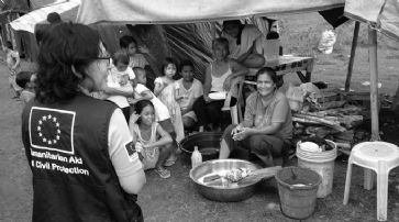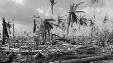 Trümmerberge behinderten den Abfluss des Wassers. Viele Menschen, die seit Tagen nur unter notdürftig zusammengebauten Dachresten oder Plastikplanen leben, standen in der verwüsteten Stadt Tacloban teils knietief in einer durch Fäkalien, Kadaver und Müll verseuchten stinkenden Brühe.