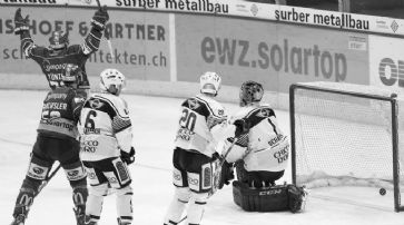 Resultate: Biel - Fribourg 1:2 (1:0, 0:1, 0:1). Davos - Lausanne 4:2 (1:1, 0:0, 3:1). Kloten Flyers - Bern 2:1 (0:1, 1:0, 0:0, 1:0) n.V. Rapperswil-Jona Lakers - Genève-Servette 5:4 (2:0, 1:2, 1:2, 1:0) n.V. ZSC Lions - Ambri-Piotta 4:1 (1:0, 2:1, 1:0). Rangliste: 1. Fribourg 22/46 (69:58). 2. Davos 22/44 (73:55). 3. Ambri-Piotta 23/44 (64:51). 4. Kloten Flyers 22/43 (68:50). 5. ZSC Lions 23/42 (75:53). 6. Genève-Servette 23/35 (61:59). 7. Lausanne 22/30 (47:54). 8. Bern 22/28 (57:65). 9. Lugano 22/27 (55:55). 10. Zug 21/23 (59:75). 11. Biel 22/20 (46:69). 12. Mike Künzle jubelt nach seinem Tor zum 4:1. /