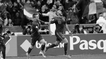 Als erste Mannschaft überhaupt gelang es Frankreich, in den Playoffs ein Defizit von zwei Toren noch wettzumachen. Für Trainer Didier Deschamps ging der Poker im heiklen Rückspiel auf. Mamadou Sakho und Karim Benzema, zwei von fünf neu in die Mannschaft gekommene Spieler, trafen innerhalb von zwölf Minuten (22./34.) zum 2:0. Sie lösten mit den Treffern, die mehr erkämpft als herauskombiniert waren, im Stade de France eine gewaltige Euphorie aus. Dass Benzema klar im Offside stand, war darum nebensächlich, weil dem Stürmer von Real Madrid wenige Minuten davor ein Tor wegen des angeblich gleichen Vergehens zu Unrecht aberkannt worden war.