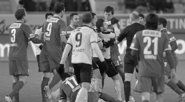 Wölfli verletzt ausgeschieden Die Young Boys verloren in Thun nicht nur das Derby, sondern auch Goalie Marco Wölfli. YB muss langfristig auf den unumstrittenen Stammkeeper verzichten. Die Nummer 3 des Schweizer Nationalteams schied vor der Pause mit einem Achillessehnenriss aus. Wölfli knickte bei der Landung nach einer Abwehraktion mit dem linken Fuss um und musste durch Super-League-Debütant Yvon Mvogo ersetzt werden. Der Schweizer Nachwuchs-Internationale wurde in 52 Minuten nur einmal wirklich geprüft. Mvogo dürfte nach der Winterpause genügend Einsatzzeit bekommen, um sich zu beweisen.Thun - Young Boys 1:0 (1:0) Thun Arena. - 7517 Zuschauer. - SR Graf. - Tor: 23. Christian Schneuwly (Schirinzi) 1:0. Thun: Faivre; Lüthi, Schenkel, Sulmoni, Schirinzi; Siegfried, Hediger; Christian Schneuwly (62. Ferreira), Zuffi (76. Cassio), Martinez (81. Marco Schneuwly); Sadik. Young Boys: Wölfli (38. Tumult nach einem Foul von YBs Renato Steffen an Dennis Hediger. /