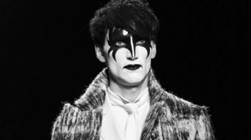 Der griechisch-amerikanische Designer überraschte das Publikum seiner Modenschau auf der Milan Fashion Week Men gestern mit einem unangekündigten Auftritt der Rockband ('I Was Made For Lovin You'). Ganz im Sinne der Band traten die Models mit einem Make-up im Kiss-Style - mit weiss geschminkten Gesichtern und schwarzen Sternen um die Augen - auf.