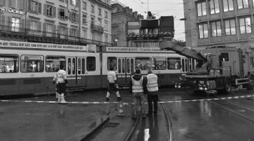 Eines der beiden Trams entgleiste, wie ein Sprecher der Verkehrsbetriebe der Stadt Zürich (VBZ) gegenüber der Nachrichtenagentur sda sagte.