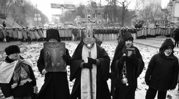 Klitschko: Regierung verantwortlich für Eskalation Klitschko macht die Regierung für die eskalierende Gewalt verantwortlich. Präsident Janukowitsch höre nicht auf die Forderung der Demonstranten nach Neuwahlen, schrieb Klitschko in einem Beitrag für die «Bild»-Zeitung. Es würde ihn «nicht wundern, wenn es bald Tote zu beklagen gibt». Die Opposition, die für einen friedlichen Protest stehe, habe «die Bewegung nicht mehr unter Kontrolle». Klitschko warf der Führung um Janukowitsch vor, sie habe selbst Schläger in die Hauptstadt gebracht, um die Situation zu destabilisieren. Er behauptete, er habe persönlich zwei Provokateure gestellt. Nahe dem Parlament in Kiew standen am Dienstag weiterhin Hunderte gewaltbereite Regierungsgegner einem massiven Aufgebot der Sicherheitskräfte gegenüber. Die maskierten und mit Holzknüppeln bewaffneten Demonstranten verstärkten ihre Barrikaden. In der Nacht hatten Gewaltbereite erneut Steine und Brandsätze auf die Sicherheitskräfte geschleudert.Geistliche stehen zwischen Regierungsgegnern und Polizisten. /