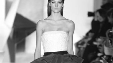 Das französische Luxuslabel stellte seine neuen Entwürfe heute Morgen im Grand Palais in der Metropole als Teil der jährlichen Modewoche vor. Der Kreativchef Lagerfeld ging mit seiner Linie in eine weibliche Richtung und die Kollektion schloss Kreationen wie trägerlose, funkelnde, elfenbeinfarbene Kleider und einen hochtaillierten grauweissen Rock, der mit einer dazu passenden Crop-Jacke kombiniert wurde, mit ein. Diese zwei Ensembles wurden von den Supermodels Lindsey Wixson (19) und Cara Delevingne (21) vorgeführt, die auch Looks im Hochzeits-Style vorstellten. Zu ihrem ansonsten eleganten Look trugen die Schönheiten allerdings Sneaker.