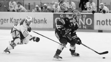Der Gast aus St. Gallen hatte nach der sofortigen Vertragsauflösung mit dem ehemaligen EVZ-Captain Duri Camichel und der gleichzeitigen Trennung von Franco Collenberg auf eine Reaktion gehofft, die im Startdrittel mit einer imponierenden Effizienz auch eintraf. Jordan Murray brachte die Lakers mit seinem fünften Saisontor in Führung (7.). Weltmeister Nicklas Danielsson beendete mit dem Treffer zum 2:0 eine persönliche Torflaute von 16 Spielen. Und Hürlimann sorgte für den 3:0-Vorsprung nach dem ersten Abschnitt. Doch dann folgte die Reaktion des EVZ. Zug - Rapperswil-Jona Lakers 5:4 (0:3, 3:0, 1:1, 1:0) n.V. Bossard-Arena. - 6490 Zuschauer. - SR Mollard/Reiber, Bürgi/Kovacs. - Tore: 7. Jordan Murray 0:1. 13. Danielsson (Friedli/Ausschluss Derrick Walser) 0:2. 14. Rapperswils Matteo Nodari (l.) gegen Topscorer Reto Suri vom EVZ. / Foto: EQ Images
