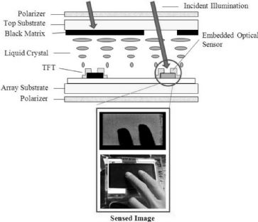 ![]() Optische Sensoren sind in die Display-Pixel eines 4-Zoll-Bildschirms integriert. /