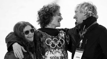 ![]() Iouri Podladtchikov jubelt mit Mutter Valentina und Vater Iouri über die Medaille. /