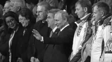 Russland hatte für die Winterspiele unter Palmen und die dafür nötige Infrastruktur die Olympia-Rekordsumme von umgerechnet rund 46 Milliarden Franken ausgegeben. Wladimir Putin, IOC-Praesident Thomas Bach und Jacques Rogge an der Abschlussfeier. /