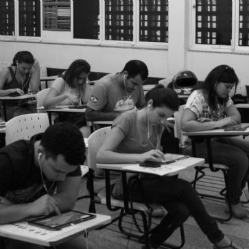 ![]() Studenten spielen das Rinderfarm-Spiel in Tocantins, Brasilien. /