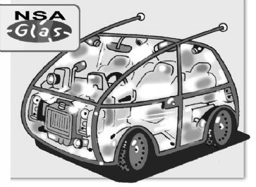 Ein gläsernes Auto für gläserne Menschen: Der «NSA Glas» gehört zu den grossen Stars am diesjährigen Salon und macht Sie fit für die Datenautobahn. Er besteht rundherum aus Glas, sogar der Boden ist durchsichtig. Einen Blechrahmen gibt es nur dafür, damit das Fahrzeug nicht auseinanderfällt. Ansonsten lässt er wirklich keine Wünsche offen und die Ausstattung ist spitze! Schon die Grundversion strotzt von Cadgets wie Wanzen, Mikros, Kameras, Apps und Dings.