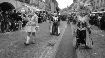 ![]() Vor allem Kinder genossen es, ihre Fantasiekostüme spazieren zu führen. Drittgrösste Fasnacht der Schweiz Die Berner Fasnacht gilt seit ihrem Wiederaufleben im Jahr 1982 allgemein als drittgrösste der Schweiz. Sie beginnt in Bern traditionell mit der Bärenbefreiung und der Ychüblete. Nach dem Auftakt vor dem Käfigturm am Donnerstag gaben die Guggenmusiken den Takt an und übernahmen das Zepter in der unteren Altstadt. Zum Programm des ersten Abends gehörte auch eine Schnitzelbank-Soirée. Neben dem grossen Fasnachtsumzug am Samstag gehört auch der Kinderumzug vom Freitag zu den Höhepunkten der Fasnacht in der Bundesstadt. Zu Ende geht die Berner Fasnacht, die heute eine treue «Stammkundschaft» hat, jeweils in den frühen Morgenstunden des Sonntags in Berner Altstadtrestaurants und auf der Gasse.