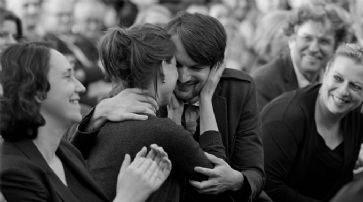 Sasa Stanisic wurde in der Sparte Belletristik für den Roman «Vor dem Fest» ausgezeichnet. Darin erzählt er über die Nacht vor einem Fest in einem Dorf der Uckermark. Sasa Stanisic freut sich mit seiner Freundin über die Auszeichnung. / Foto: Leipziger Messe GmbH/Uli Koch