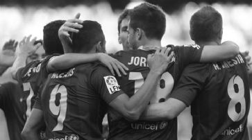 Als Tabellendritter mit 66 Zählern bleibt der FC Barcelona vier Punkte hinter Leader Real Madrid. Atletico Madrid rangierte mit 67 Punkten auf Platz zwei. Resultat: Elche - Betis Sevilla 0:0. FC Barcelona - Osasuna 7:0. FC Sevilla - Valladolid 4:1. San Sebastian - Valencia 1:0. Rangliste: 1. Real Madrid 28/70. 2. Atletico Madrid 28/67. 3. FC Barcelona 28/66. 4. Athletic Bilbao 27/51. 5. San Sebastian 28/46. 6. Villarreal 27/44. 7. FC Sevilla 28/44. 8. Valencia 28/36. Jubel bei Barcelona. / Foto: EQ Images