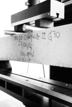 Das eingebettete Bambus-Material wird auf Druckbelastung geprüft. / Foto: Carlina Teteris ETH-Zukunftsblog