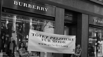 ![]() Unsere Videoaufnahmen belegen das Gegenteil: Füchse in winzigen Drahtgitterkäfigen, krank, aufgrund Fettleibigkeit kaum bewegungsfähig oder mit fehlendem Schwanz. Burberry bricht hiermit seine eigenen ethischen Standards. Wir erwarten eine öffentliche Stellungnahme und ein endgültiges Aus für Pelz in den Burberry-Kollektionen.» Um die Forderungen zu unterstreichen, hatte «Vier Pfoten», ebenfalls gestern, eine Protest-Aktion vor dem Burberry-Store in der Bahnhofsstrasse 44 in Zürich durchgeführt.