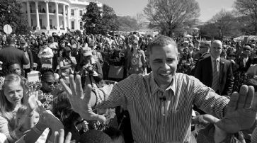 US-Präsident Barack Obama begrüsst an Ostern Kinder bei traditionellen «Egg Roll» im Weissen Haus. /