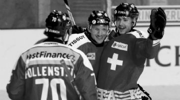 Im letzten Abschnitt verloren die Schweizer etwas die Konzentration. «Wir haben aufgehört zu spielen», so Trainer Sean Simpson, der mit seinen Spieler überhaupt nicht zufrieden war. «Ich habe dem Team in der zweiten Pause noch gesagt, dass die Partie noch nicht vorbei ist.» Vielmehr als über die letzten 20 Minuten ärgerte sich Simpson aber über den Ausfall von Julien Vauclair. Der Verteidiger von Lugano zog sich in der Schlussphase eine Hirnerschütterung zu. «Er wird leider nicht an die WM kommen können», so Simpson. Auch Martin Gerber nicht dabei Vauclair reiht sich in die prominente Liste von Absagen ein, die mittlerweile rund ein dutzend Spieler umfasst. Denn nachdem er das WM-Out von Vauclair verkündet hatte, fügte er völlig frustriert noch an: «Martin Gerber wird auch nicht kommen.» Gerber ist damit bereits der dritte Goalie nach Tobias Stephan und Lukas Flüeler, der auf die WM verzichtet oder verletzungsbedingt verzichten muss. Die Absage von Flüeler wollte Simpson dagegen noch nicht bestätigen, ebenso nicht wie jene von Stürmer Roman Wick und den Klotenern Matthias Bieber (Fuss) und Patrick von Gunten (Muskelfaserriss), deren WM-Ausfälle gestern vor dem Spiel gegen Tschechien durchsickerten. «Wir werden die nächsten Kadermutationen am Montag durchgeben», so Simpson. Starkes zweites Drittel Der Frust von Simpson war verständlich, umso mehr weil die Schweizer in den ersten 40 Minuten durchaus zu gefallen wussten. Insbesondere die erste Formation mit den beiden NHL-Söldnern Damien Brunner und Roman Josi überzeugte. Nach einem «etwas langsamen Start» (Simpson) und einem ausgeglichenen Startdrittel erhöhten die Schweizer im zweiten Drittel das Tempo. Sie kreierten Chance um Chance und wurden, nachdem Inti Pestoni und Benjamin Plüss noch gescheitert waren, belohnt. Josi war es, der in der 24. Minute (endlich) den zweiten Treffer für die Schweizer erzielte. Der Verteidiger der Nashville Predators lupfte den Puck aus wenigen Metern wunderschön unter die Latte und bewies einmal mehr seine Klasse. Josi zeigte nicht nur in dieser Szene auf, weshalb er an der letzten WM als wertvollster Spieler (MVP) ausgezeichnet worden war. Fast immer, wenn der Berner am Puck war, wurde es gefährlich. Powerplay als Plus Verlassen kann sich die Schweiz in der WM-Vorbereitung bisher auf ihr Powerplay. Denis Hollenstein, Torschütze Damien Brunner und Roman Josi jubeln nach dem Tor zum 1:0. / Foto: EQ Images
