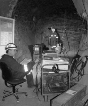 ![]() Experten vermessen zeitabhängige Deformationen im Opalinuston um einen Zugangsstollen im Felslabor Mont Terri. /