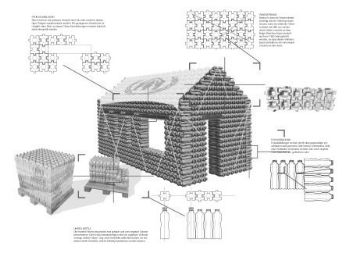 Die «United Bottle» kann nach der Wasserflasche als Baustein dienen, aus dem sich tragende Systeme ohne Klebstoff errichten lassen. / Foto: United Bottle Group ETH-Zukunftsblog