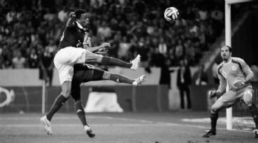 Prompte Reaktion der Deutschen Die Deutschen, die in der ersten Stunde ihre besten Chancen durch Mesut Özil und Marco Reus vergeben hatten, reagierten nach dem Gegentreffer sofort. Nur vier Minuten nach Eto'o schlug Thomas Müller, der Torschützenkönig der letzten WM, nach einer Flanke von Jerome Boateng zu. Und weitere vier Minuten später legte der eingewechselte Lukas Podolski, der aus einer Abseitsposition gestartet war, perfekt für den ebenfalls eingewechselten André Schürrle auf. Doch die Schwächen in der Defensive brachten Deutschland um den Sieg: Der Mainzer Eric Choupo-Moting traf in der 78. Minute für die überzeugenden Afrikaner zum verdienten 2:2.Deutschland - Kamerun 2:2 (0:0) Mönchengladbach. - 40'000 Zuschauer. Samuel Eto'o (l.) im Duell mit Sami Khedira. / Foto: EQ Images