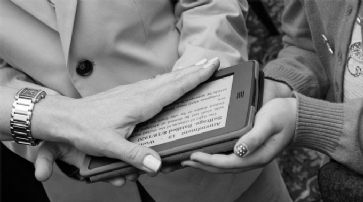 Der E-Reader, den LeVines zwei Kinder bei der Vereidigung hielten, zeigte eine Kopie der amerikanischen Verfassung. Genau genommen war der 19. Verfassungszusatz (Amendment) zu sehen. Dieses wurde im Jahr 1920 zu der US-Verfassung hinzugefügt und garantiert Frauen das Recht abzustimmen. Eid auf die Verfassung in elektonischer Form. /
