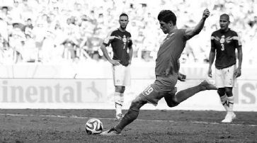 Das Drama in der Hitzeschlacht In der Glutofenhitze von Fortaleza, wo im ausverkauften Stadion wegen der Hitze (Temperaturen über 30 Grad, Luftfeuchtigkeit über 70 Prozent) sogar Sitzplätze leer blieben, regierte bei Holland in der ersten Halbzeit die Vorsicht. Man wollte offensichtlich haushälterisch mit den eigenen Kräften umgehen. Bondscoach Louis van Gaal vertraute in der Abwehr erstmals dem Augsburger Paul Verhaergh ((31), der den sechs Jahre jüngeren Daryl Janmaat ersetzte, mit dem die Oranjes noch kein Länderspiel verloren hatten. Der WM-Zweite verbarrikadierte sich in den ersten 45 Minuten, hatte wohl mehr Ballbesitz, erntete aber für seine destruktive Spielweise mit querem Ballgeschiebe wiederholt Pfiffe der schwitzenden Zuschauer. Mexiko tat deutlich mehr fürs Spiel, wirkte zielstrebiger und dynamischer. Vor allem über die linke Flanke, über den schnellen und technisch beschlagenen Miguel Layun ging mehrmals Gefahr aus. Die erste Grosschance vergab Hector Herrera (17.), der den Ball im Abschluss aber nicht richtig traf. Dennoch wären die Elftal in der Nachspielzeit der ersten Halbzeit beinahe in Führung gegangen. Nach einem Abspielfehler löste sich Robin van Persie. Er spielte den pfeilschnellen Arjen Robben an, der zu Fall kam. Der portugiesische Ref Proença pfiff nicht, Wiederholungen und Zeitlupenaufnahmen zeigten, dass Teamsenior Rafael Marquez (35) den Bayern-Stürmer im Strafraum doch gefoult hatte. Die Wende im Endspurt Die Partie erhielt erst in der zweiten Halbzeit und nach dem Führungstor von Giovani Dos Santos Fahrt. Der einst bei FC Barcelona geförderte Stürmer von Villarreal in Spanien setzte sich gegen Daley Blind durch und schloss gekonnt ab. Nun war Holland gefordert und forcierte - endlich - die Offensive. In der 57. Minute lenkte Torhüter Guillermo Ochoa reflexstark einen Abschlussversuch des aufgerückten Verteidigers De Vrijs aus kurzer Distanz an den Innenpfosten. Später rettete Mexikos starker Schlussmann zweimal gegen Arjen Robben und Wesley Sneijder verzog. Letztlich wendeten Sneijder und Huntelaar per Foulpenalty die in der Schlussphase fulminante Partie. Huntelaar wurde erst in der 76. Minute eingewechselt und wurde letztlich zum Matchwinner. "Vor der Einwechslung musste ich noch dringend ausdreten. Klaas-Jan Huntelaar verwandelt in der vierten Minute der Nachspielzeit einen Elfmeter zum 2:1. / Foto: EQ Images