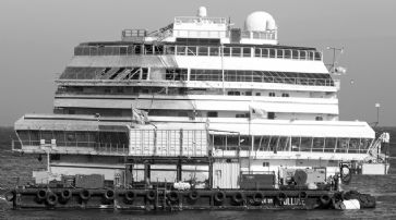 Das Wrack des vor der Insel Giglio liegenden Kreuzfahrtriesen wird nach Genua geschleppt und verschrottet. /