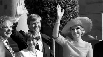 Prinz Willem-Alexander und Ehefrau Maxima (r.). /