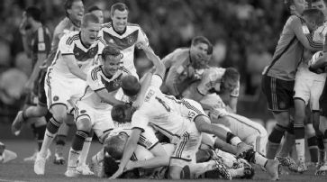 ![]() Minute wurde ein Treffer von Higuain wegen Abseits aberkannt, kurz nach der Pause verpasste Messi das 1:0 nur um Zentimeter. Die in der K.o.-Runde nicht immer überzeugenden Argentinier trugen ihren Teil zu einer temporeichen und packenden Partie bei. Es war den Südamerikanern aber anzumerken, dass ihr Spiel kräfteraubend war. In der zweiten Halbzeit reichte die Energie nicht mehr, um jeden Konter durchzuziehen, einige Ungenauigkeiten schlichen sich in ihr Spiel ein und der Ball landete jeweils deutlich schneller wieder beim Gegner. Was die «Albiceleste» aber während der ganzen Partie auszeichnete, war ihr Kampfgeist. Über zwei Drittel der Zeit war der Ball in den Reihen von Bastian Schweinsteiger und Co. Aber nur selten konnten sie sich durch die generischen Reihen kombinieren und wenn es dann gelang, fehlte zunächst der eine oder Zentimeter. Erst als die Argentinier nicht mehr so konsequent verteidigten, kamen die Torchancen. Und am Ende reichte eine. Deutschland - Argentinien 1:0 n.V. (0:0, 0:0) Maracanã , Rio de Janeiro. - 74'738 Zuschauer. - SR Rizzoli (It). - Tor: 113. Götze 1:0. Deutschland: Neuer; Lahm, Boateng, Hummels, Höwedes; Kramer (31. Schürrle), Schweinsteiger; Müller, Kroos, Özil (120. Mertesacker); Klose (88. Götze). Argentinien: Romero; Zabaleta, Demichelis, Garay, Rojo; Perez (86. Gago), Biglia, Mascherano, Lavezzi (46. Agüero); Messi, Higuain (78. Palacio). Bemerkungen: Deutschland ohne Khedira und Mustafi (beide verletzt). Argentinien ohne Di Maria (verletzt). 30. Tor von Higuain wegen Abseits aberkannt. 31. Kramer angeschlagen ausgewechselt. 45. Kopfball von Höwedes an den Pfosten. Verwarnungen: 29. Schweinsteiger. 34. Höwedes. 64. Mascherano. 65. Agüero (alle Foul).