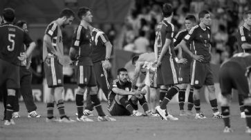 Die Flughafenfeuerwehr begrüsste die Nationalmannschaft mit Wasserfontänen. Als erster der Mannschaft setzte Captain Philipp Lahm seine Füsse mit dem goldenen WM-Pokal auf die Landebahn.