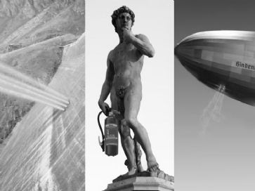 Für Feuerlöscher gebohrt Weitere sechs, rund sieben Zentimeter dicke Bohrlöcher wurden heute Nachmittag an der Staumauer von Grand Dixence im Kanton Wallis entdeckt, nachdem sich die Talbevölkerung in den Tagen zuvor über eine erhöhte Restwassermenge gewundert hatte, obwohl es seit Dienstag zu keinen Niederschlägen gekommen war. Fast zeitgleich machten belesene Kulturintressierte der Uffizien in Florenz die Museumsleitung darauf aufmerksam, dass Michelangelos berühmter David nach Originalquellen keinen Feuerlöscher, sondern eine Steinschleuder in der Hand halte. Die Bundesanwaltschaft will mit dem Verweis darauf, dass es sich um ein laufendes Verfahren handelt, keine Stellung zum Stand der Ermittlungen nehmen. /