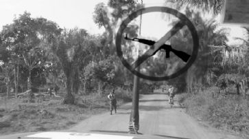 Spirale der Gewalt Die ersten Unterzeichner der Einigung waren der Kommandant der muslimischen Séléka-Miliz, Mohammed Mussa Dhaffan, und der landesweite Koordinator der christlichen Anti-Balaka-Miliz, Patrice-Edouard Ngaissona. «No Arms»» Logo eines Hilfswerkes /