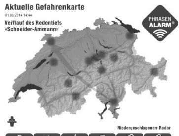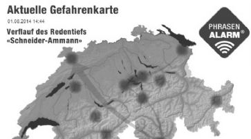 ![]() Besonders hart traf es etwa die Gemeinden Oberarth SZ, Luthern Bad LU, Melide TI und Porrentury JU, die allesamt vom Rhetorik-Tief «Schneider-Ammann» heimgesucht wurden, welches tags zuvor bereits in Rorschach SG gewütet hatte. In den betroffenen Ortschaften sind Care-Teams seit Stunden daran, die Opfer behutsam aufzuwecken. Unklar ist noch, ob für einzelne jede Hilfe zu spät kommen könnte: «Es würde die Redensart 'zu Tode langweilen' nicht geben, wenn sowas nicht auch real vorkommen könnte», wie ein Sprecher der Pruntrutter Rettungskräfte gegenüber lokalen Medien sagte. Insgesamt wird im ganzen Staatsgebiet mit mehreren Tausend unabhängigen Redeergüssen gerechnet, die meisten von ihnen hielten sich glücklicherweise stationär, «Leuthard» ging über Zernez GR nieder, «Köppel» in Arbon TG, «Sommaruga» lähmte Laupen BE. Auch wenn sich die Gesamthöhe der Schäden noch nicht beziffern lässt, sicher ist laut dem Bundesamt für Statistik bereits jetzt: Die Niedergeschlagenenmenge an diesem 1. August steht deutlich über dem langjährigen Durchschnitt.