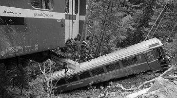 Schweres Zugunglück auf der Strecke Chur - St. MoritzChur - Die Rhätische Bahn hatte am Mittwochmittag Glück im Unglück: Ein Zug fuhr bei Tiefencastel auf einen Erdrutsch auf, worauf drei Waggons entgleisten. Elf Personen wurden verletzt. Eine Zeitlang wurde befürchtet, einer der Wagen sei in die Schlucht gestürzt.bert / Quelle: sda / Mittwoch, 13. August 2014 / 13:30 h
