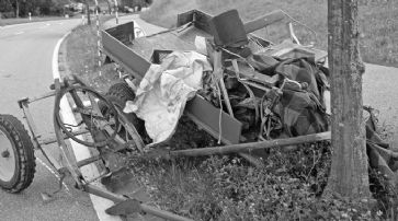 Das Pferd brannte daraufhin durch und prallte gegen einen Baum. Dort riss es sich von der Kutsche los und rannte weiter Richtung Ehrikon. Auf diesem Weg kollidierte es heftig mit dem stehenden Auto eines 81-Jährigen. Das Pferd musste noch auf der Unfallstelle von den Leiden erlöst werden. / Foto: Markus Heinzer newspictures.ch