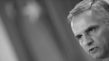 Zum selben Thema hatte Burkhalter am Montagmorgen bereits vor deutschen Botschaftern in Berlin gesprochen. Als Vorsitzender der Organisation für Sicherheit und Zusammenarbeit in Europa (OSZE) bemüht sich Burkhalter seit Monaten um eine friedliche Lösung für die Ukraine. Burkhalter in Berlin. /