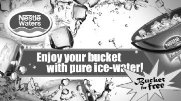 Das war ja klar!Jetzt sind also auch die grossen «Wasserproduzenten» auf den neuesten Internet-Hype aufgesprungen. Für die «Ice Bucket Challenge» steht ab sofort «pure ice-water» zur Verfügung. Wahlweise mit oder ohne Kohlensäure und derzeit - als Sonderangebot für Einsteiger - mit Gratiskübel gleich dazu.Diana von Ow / Quelle: Nebelspalter / Freitag, 29. August 2014 / 16:00 h