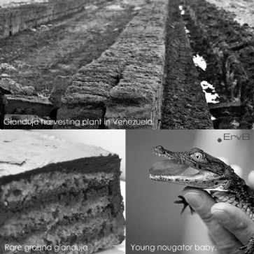 Erstmals 1813 entdeckt Die Gianduja-Masse ist nach dem italienischen Forscher Gianfranco Gianduja benannt, der 1813 in Venezuela im Schwemmland des Orinoco-Flusses Ablagerungen entdeckte, die in hoher Reinheit aus zerriebenen Kakaobohnen, Nüssen und Zuckerrohr bestanden. Nur wenige Vegetationssysteme auf der ganzen Welt weisen die Bedingungen auf, welche die Voraussetzung für neue Gianduja-Ablagerungen erfüllen. Dass mit diesem sensiblen Ökosystem auch eine höchst exotische Fauna einher geht, die seltene Tierarten wie den Nougator (ein nüsseknackendes Zwergkrokodil) oder den scheuen Cacao-Bohnobo (eine Affenart) hervorgebracht hat, muss kaum extra erwähnt werden. /