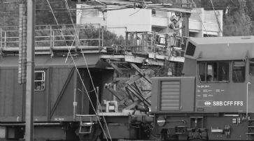 ![]() Mitarbeiter der SBB reparieren die gerissene Fahrleitung. /