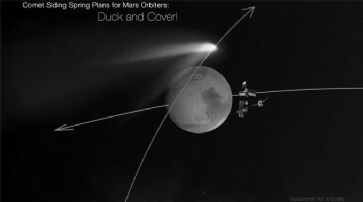 ![]() Sie dürfen auf spektakuläre Bilder der Begegnung des Roten Planeten mit dem Kometen hoffen. Der Besucher vom Rand des Sonnensystems traf am Mars auf eine kleine Armada von Forschungssonden und Robotern, die den Roten Planeten teilweise seit Jahren erkundet. Dazu zählen die europäische Raumsonde «Mars Express», die US-Forschungssonden «Mars Reconnaissance Orbiter» und «Mars Odyssey» sowie die erst im September am Mars eingetroffene Nasa-Sonde «Maven». Mit dem Teilchendetektor «Aspera 3» an Bord der ESA-Sonde «Mars Express» werden Forscher versuchen, nach der Mars-Passage von Siding Spring Bestandteile von dessen Schweif zu identifizieren. Der rund eineinhalb Kilometer grosse Kometenkern dürfte die Konsistenz von Talkumpuder haben, wie Wissenschaftler von der US-Weltraumbehörde NASA herausfanden. Das Schlimmste befürchtet So spektakulär der enge Vorbeiflug des Kometen war - kurz nach der Entdeckung von Siding Spring im Januar 2013 hatten die Wissenschaftler sogar mit einem noch weitaus dramatischeren Verlauf des kosmischen Rendezvous gerechnet. Aufgrund erster Bahndaten des Kometen schien es nämlich zunächst möglich, dass Siding Spring auf dem Mars einschlagen würde. Erst nach genaueren Berechnungen in den Folgemonaten gaben die Astronomen dann Entwarnung.