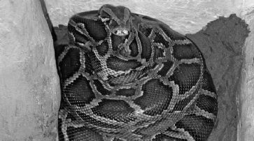 ![]() Seit (gestern) Freitag hat Samy nun im «Zoo de la Garenne» ein neues Zuhause gefunden. Dort wird er ein Jahr bleiben, bis Spezialisten für ihn in Saint-Cergue VD ein Terrarium erbaut haben. Vier Hühner pro Monat Samy könnte bis zu fünfzig Jahre alt werden. Und auch wachsen könnte die momentan fünf Meter lange Schlange noch, wie Regamey sagte: «Diese Tiere wachsen ihr Leben lang.» Zu fressen erhält Samy im Zoo jeweils alle zwei Wochen zwei Hühner. «Die Tigerpythons bewegen sich wenig und können Fett speichern», erklärte Regamey. In freier Natur würden sie auch ganze Antilopen verspeisen.Im «Zoo de la Garenne» kann das Publikum die exotische Schlange mit einer lokalen Art, der Aspisviper,vergleichen. Diese ist mit einer Länge von lediglich 40 Zentimetern deutlich weniger furchteinflössend als Samy.