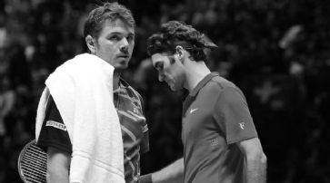 Im ersten Satz führte Wawrinka gegen Federer nach einem Blitzstart bereits 5:2, ehe er zum 5:3 zum einzigen Mal seinen Aufschlag abgeben musste. Zwei Games später machte er es dann aber besser. Im zweiten Satz verpasste Federer zunächst drei Breakchancen zum 4:2, holte sich den Satzausgleich dann zum 7:5 aber dennoch.