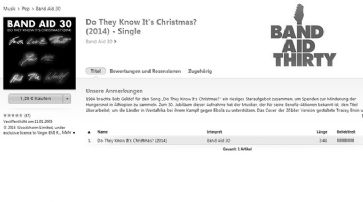 ![]() Die Erlöse sollen vollständig Hilfsprojekten gegen die Ebola-Epidemie in Westafrika zugutekommen. Demnächst soll auch eine Single für umgerechnet etwa 6 Franken in die britischen Läden gelangen. In Berlin spielten am Montag deutsche Musiker wie Udo Lindenberg, Jan Delay, Peter Maffay und die Toten Hosen erstmals eine deutschsprachige Version des Songs ein. Als nächstes sei Frankreich dran, sagte Geldof. Er habe Sängerin Carla Bruni gebeten, eine französische Fassung zu machen. Auf Englisch ist es bereits die vierte Version des Hits. Vor 30 Jahren hatten Geldof und der Schotte Midge Ure von Ultravox Band Aid ins Leben gerufen, damals wollten sie Spenden für die Hungersnot in Äthiopien sammeln.